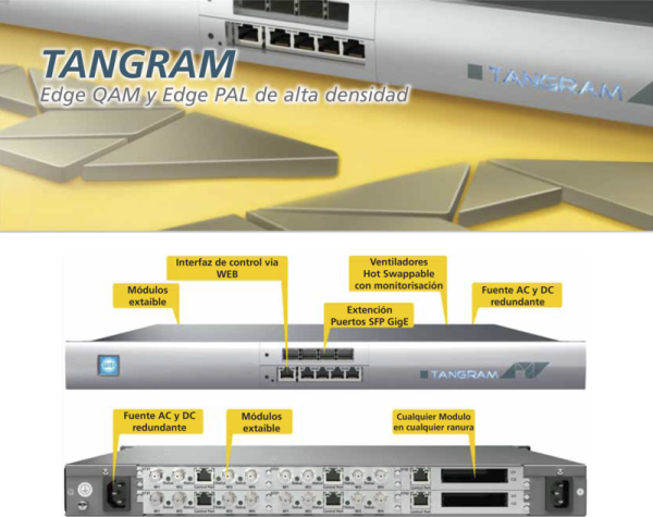 - Chasis de 19”-1UA con 6+1 slots para módulos Tangram